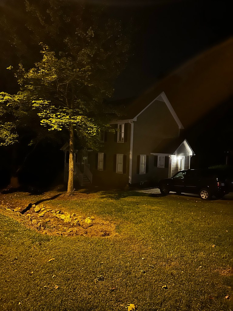 Last night, coming back through Hillsborough, we stopped for food at Bojangles and I asked if he felt like driving by mom and dad’s old house. He agreed. We stopped and took a picture of the place. It’s been kept up and looks good. It was funny, the house I worked so hard to grow up and move out of, suddenly I would give anything just to go back and sit on the couch and watch TV with mom and dad or sit at the old dining room suit and eat fried rice.